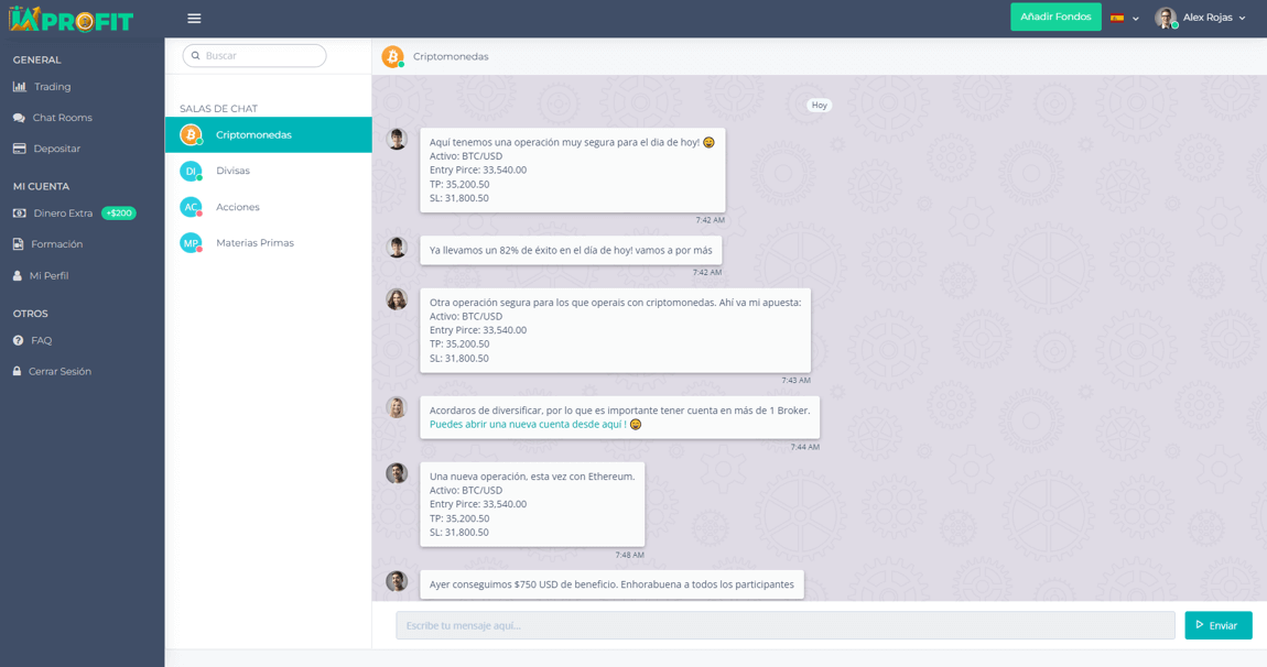 Chatea en directo con los traders de IA Profit así como con otros usuarios e inversores de la comunidad